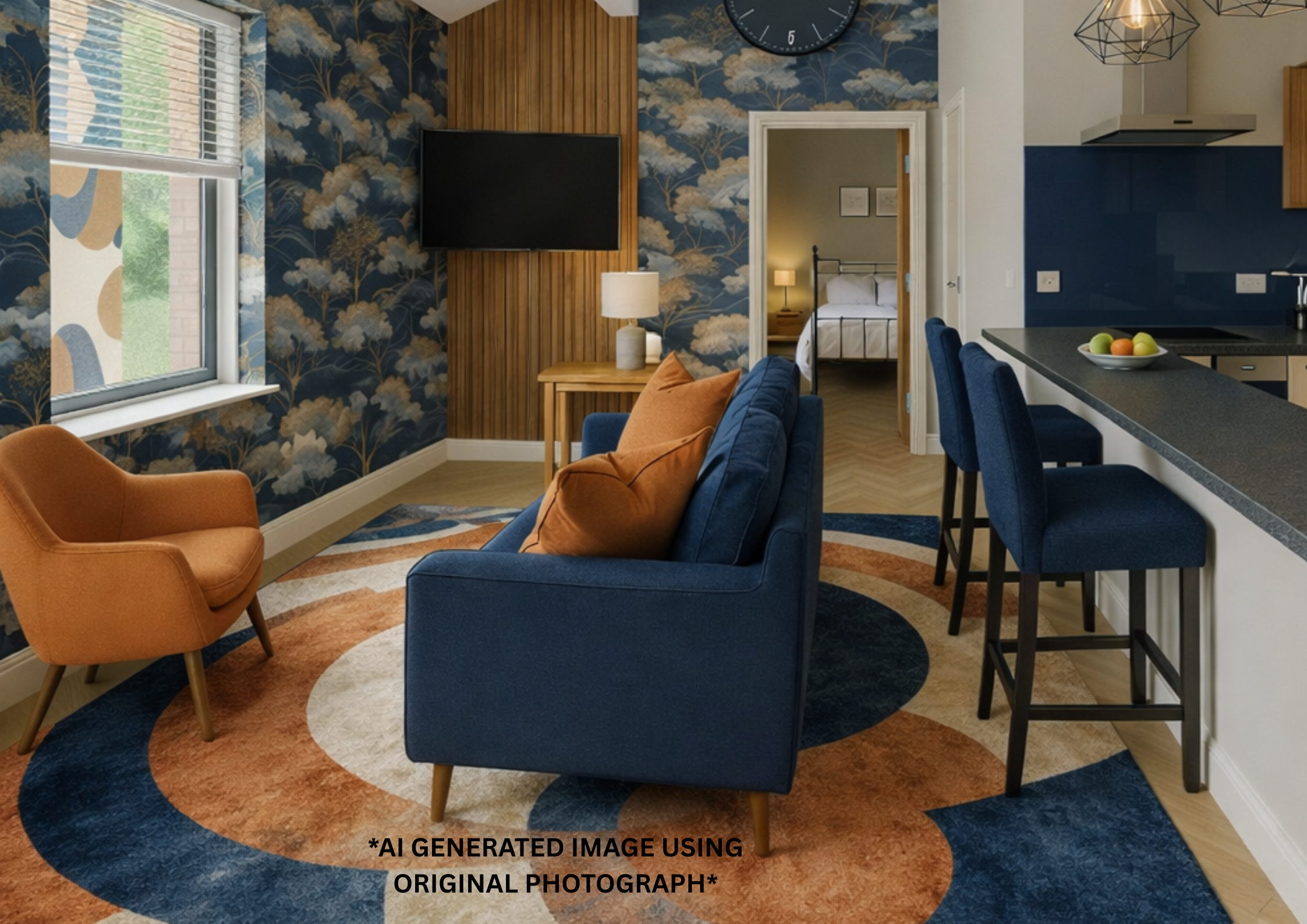 The photographs displayed are AI-generated images, created using original photographs and carefully designed to represent how the lodge is expected to appear once renovations are complete. These images are intended to give guests a clear and realistic vision of the finished lodge.