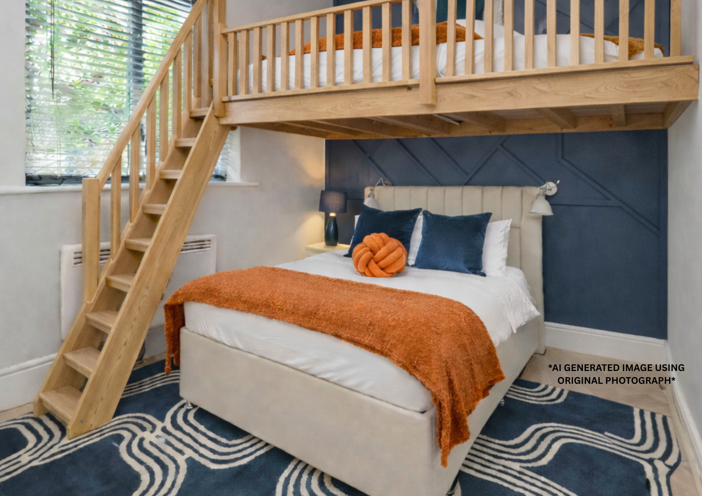 A king-size bed with a unique mezzanine level, offering an additional double bed — perfect for families or groups. - Bedroom Two: